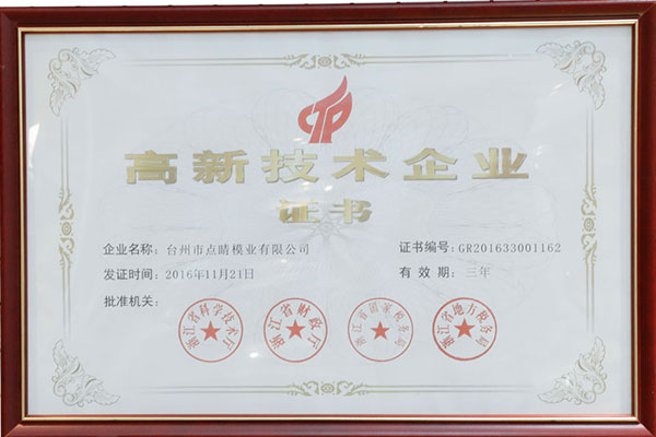 在江蘇常州成立分公司-常州點睛模業(yè)有限公司;并被列入臺州市級高新技術(shù)企業(yè)名列。